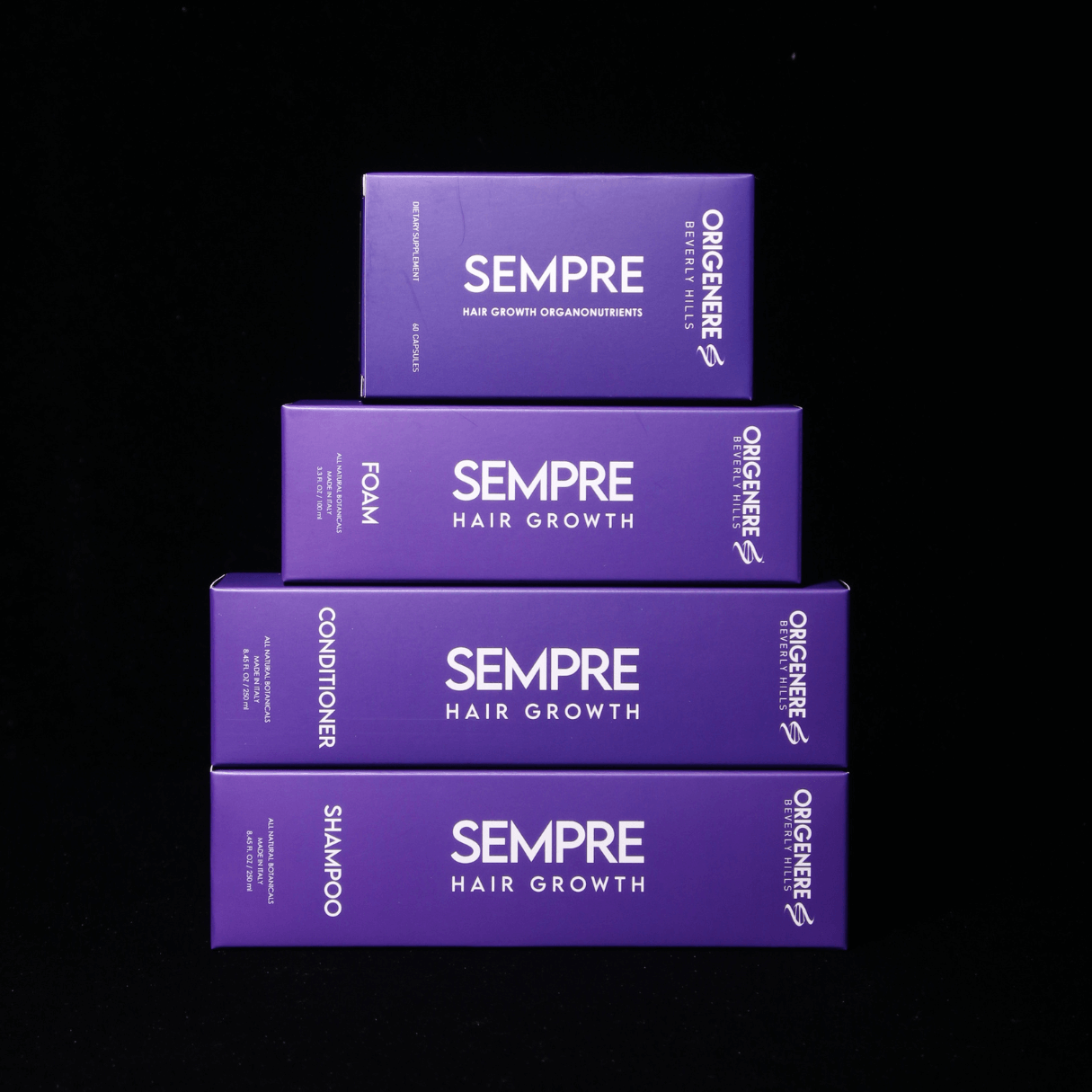 The Sempre line is specifically formulated to support hair growth, featuring the TR6 botanical complex developed by the AlviArmani Research Institute.