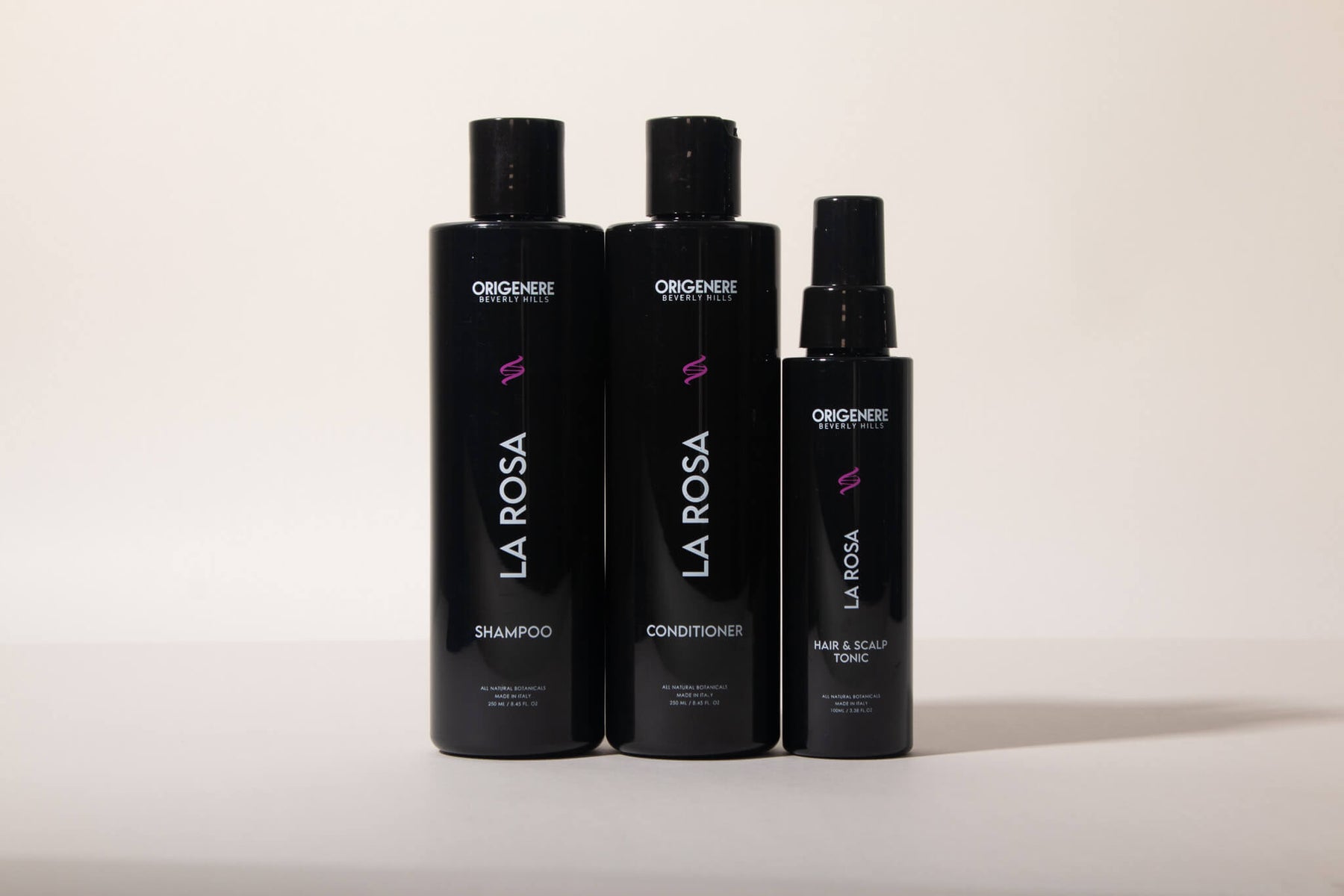 La Rosa was born from a simple question: what if daily hair care could feel as safe as it is beautiful? Designed without DHT blockers and made with a rose water base, the line was created to support sensitive scalps and women during pregnancy and breastfeeding — without compromise. It reflects Origenere’s philosophy of blending science, safety, and ritual into every product.